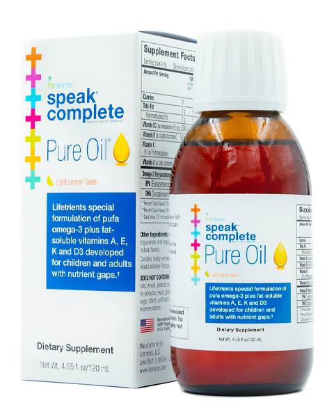 Speak®+d ليس فقط أوميغا ٣! speak® يوفر جرعات ونسب دقيقة من مكونات خاصة للأطفال ذوى الاحتياجات الغذائية الخاصة